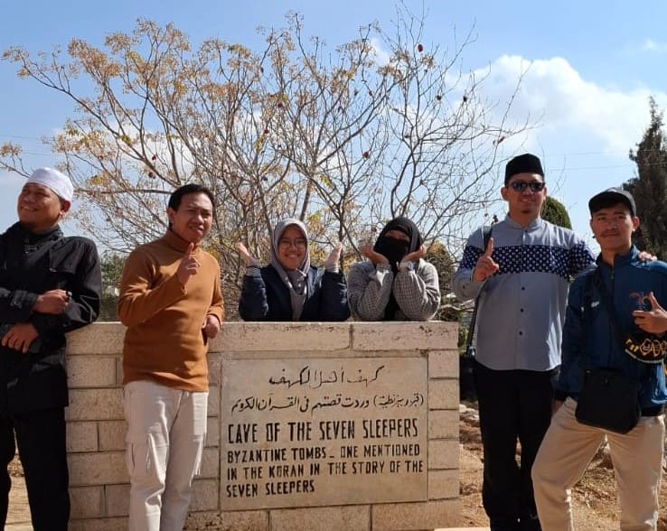 Selanjutnya, kami mengunjungi gua yang diyakini sebagai tempat berlindungnya pemuda Ashabul Kahfi. Tempat ini menjadi simbol keselamatan dalam kondisi terdesak, seperti halnya para pengungsi Palestina yang kini menetap di berbagai kamp di Yordania.